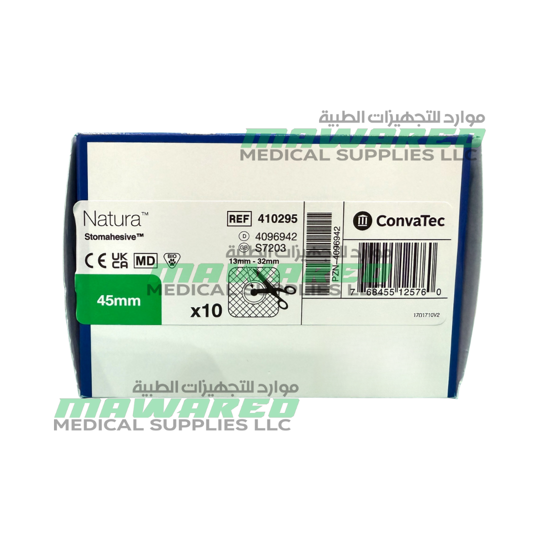 The ConvaTec Natura Two-Piece Base Cut-to-fit Skin Barrier 45mm (410295) is designed for the SUR-FIT Natura system, offering secure and comfortable ostomy management. This cut-to-fit Stomahesive skin barrier features a flexible hydrocolloid collar and accommodates stoma sizes from 13–32 mm, ensuring a customized fit.